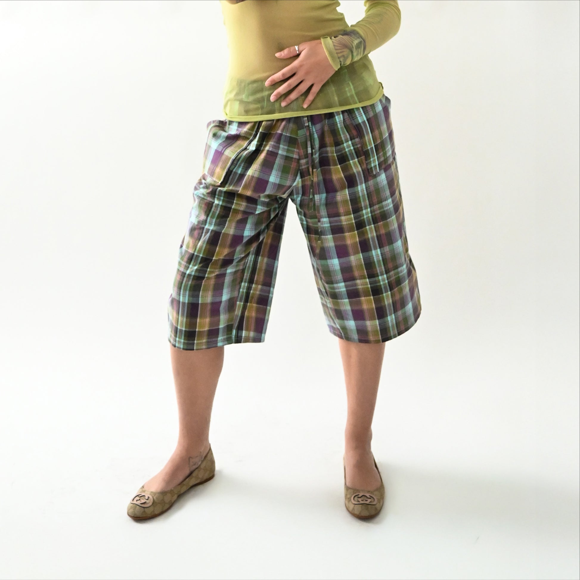 Pantacourt en coton, à carreaux
